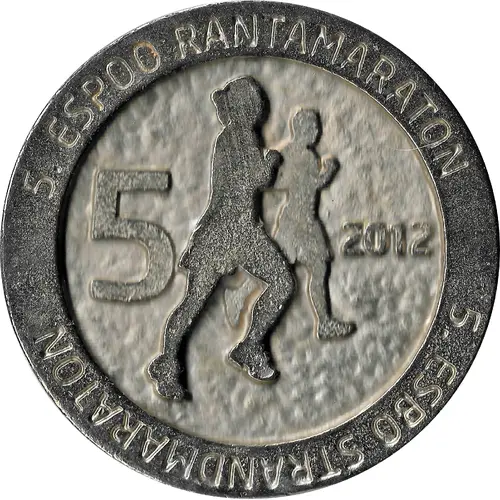 | 正面铭文 | 5. ESPOO RANTAMARATON 5 2012 5. ESBO STRANDMARATON (Translation: 5. Espoo beach marathon) |