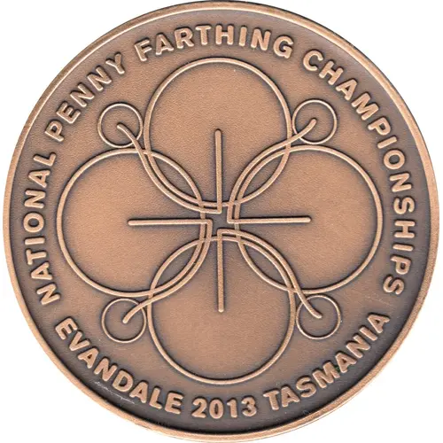 | Obverse lettering | NATIONAL PENNY FARTHING CHAMPIONSHIPS EVANDALE 2013 TASMANIA |