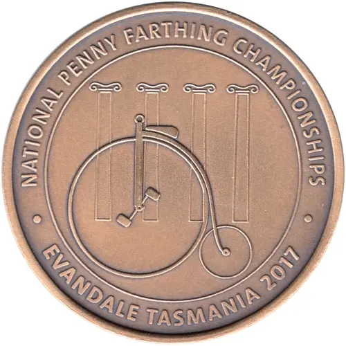 | Obverse lettering | NATIONAL PENNY FARTHING CHAMPIONSHIPS . EVANDALE TASMANIA 2017 . |