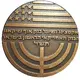 Above, a portion of the U.S. flag. Below, a portion of the seven branched candelabra. In the center, in Hebrew `Exchange National Bank of Chicago, the first American Bank in Israel 5730`. |