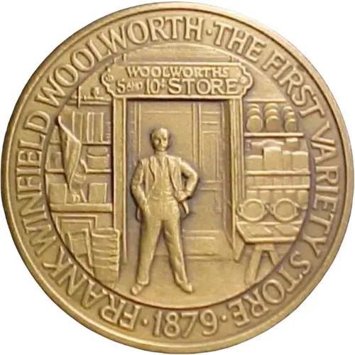 | Obverse lettering | FRANK WINFIELD WOOLWORTH. THE FIRST VARIETY STORE WOOLWORTHS 5 AND 10¢ STORE 1879 |