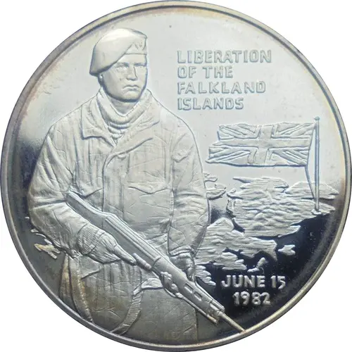 Obverse lettering LIBERATION OF THE FALKLAND ISLANDS HUNE 15 1982