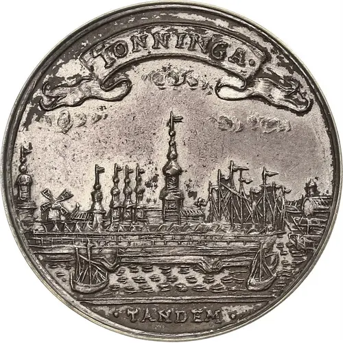 | Popis líce | View of the city and the port of Tonning. Above, in the sky, a banner with name of the city |