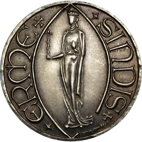 | 正面描述 | Crowned and draped Ermesinde, standing three-quarter left, holding in her right hand a scepter, surrounded by the legend. Signature of the engraver and vintage in the exergue. |