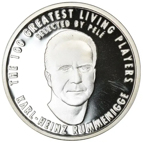 | Obverse lettering | THE 100 GREATEST LIVING PLAYERS SELECTED BY PELÉ KARL-HEINZ RUMMENIGGE |