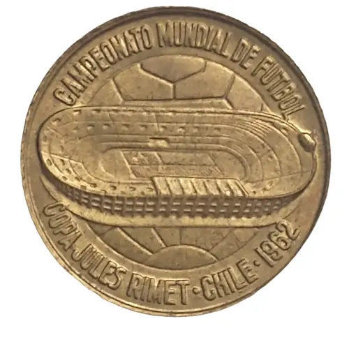 | Obverse lettering | CAMPEONATO MUNDIAL DE FUTBOL COPA JULES RIMET • CHILE • 1962 (Translation: SOCCER WORLD CHAMPIONSHIP JULES RIMET CUP • CHILE • 1962) |