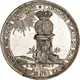 Crown above two rounded crests posed on a pedestal, on which another coat of arms leans (arms of Danish Icelandic Company). At foot of pedestal there is a winged caduceus a trident and cornucopia. At lower left a globe with the outline of Iceland and lower coast of Greenland. The entire scene is enlighted by a radiating sun in upper left |