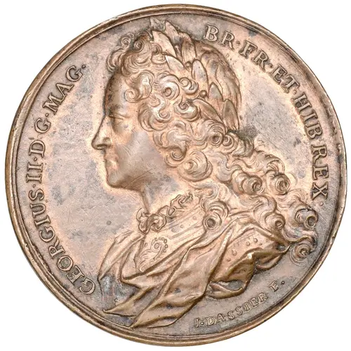 | Obverse description | Bust of George II, left, laureate, hair long, in armour and mantle |