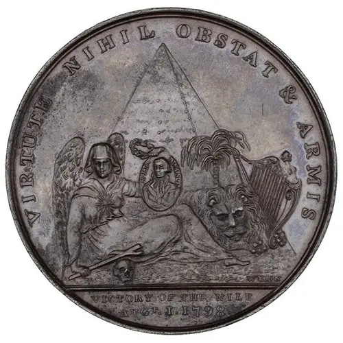 | Légende de l’avers | VIRTUTE NIHIL OBSTAT & ARMIS VICTORY OF THE NILE AUGT. 1. 1798. (Translation: Nothing withstands valour and arms) |