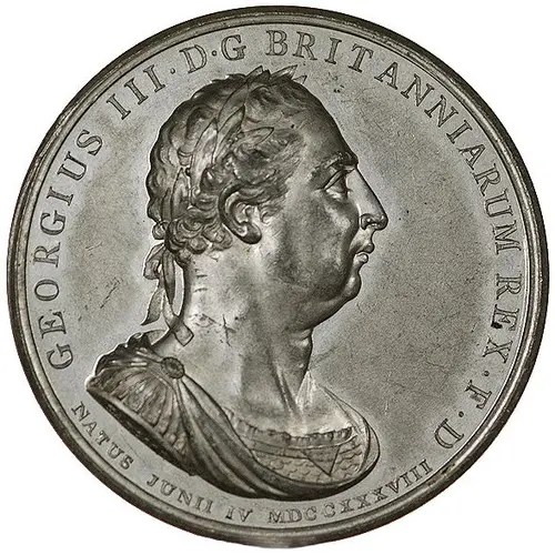 | Chữ khắc mặt trước | GEORGIUS III . D . G BRITANNIARUM . REX .F.D. NATUS JUNII IV MDCCXXXVIII |