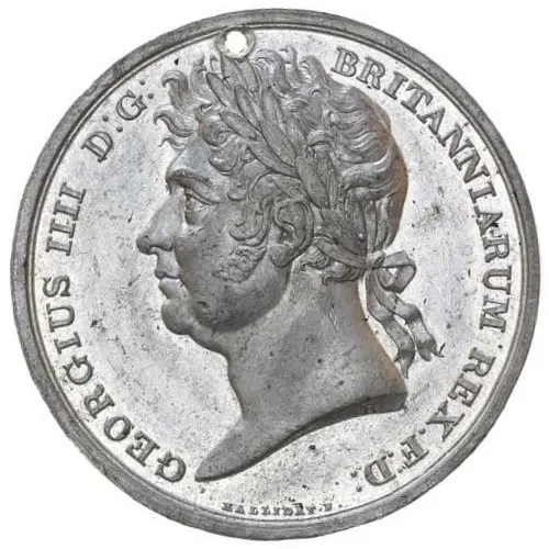| Надписи реверса | IN COMMEMORATION OF HIS MAJESTYS ROYAL & FRIENDLY VISIT TO IRELAND IN AUGUST 1821. |
