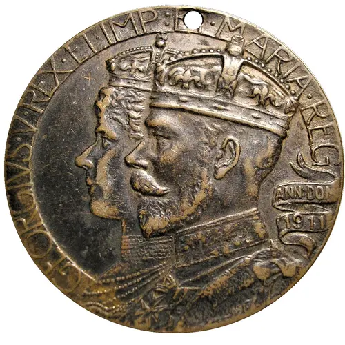 | Obverse description | Conjoint Busts of King George and Queen Mary, crowned to left. Latin legend around and date in a ribbon behind the king`s neck. |