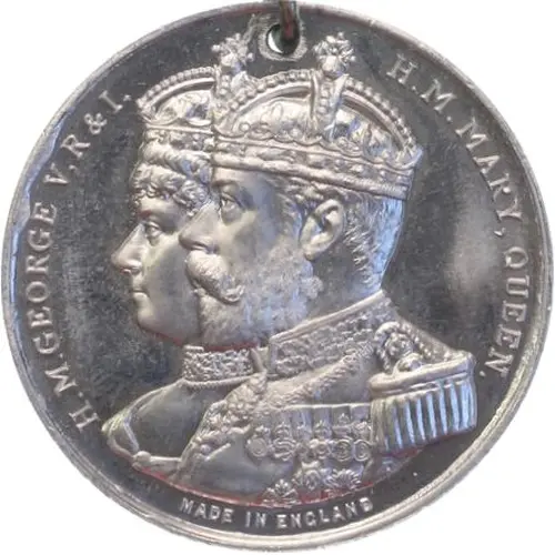 | Reverse lettering | BORN 3RD JUNE, 1865. MARRIED 6TH JULY, 1893. ASCENDED THRONE, 1910. CROWNED JUNE 22ND 1911 TO COMMEMORATE THE CORONATION OF H.G.M.GEORGE V.KING OF GREATER BRITAIN & EMPEROR OF INDIA |