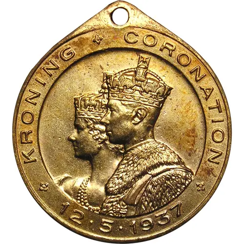Conjoined crowned bust of King George VI and Queen Elizabeth, left. The legend on a raised band above: “KRONING (ornament) CORONATION” and below between ornaments: “12 . 5. 1937” |