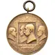 At center busts of Wilhelm II and Franz Joseph facing left, to the left Ferdinand I facing right and to the right Mohammed V facing left, rayonant star above and fasces with laurel and oak branch below. |