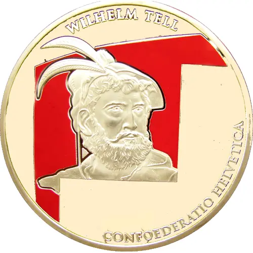| Ön yüz açıklaması | Bust of Willhelm Tell on a red background and polished silver plate |