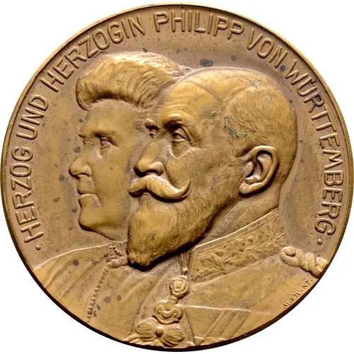 | Obverse lettering | HERZOG UND HERZOGIN PHILIPP VON WÜRTTEMBERG M. & W. ST. |