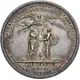 Obverse description Man and woman stand facing each other, holding hands, above floating angel with trumpet, legend surrounding.