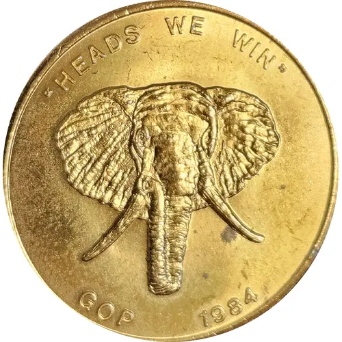 | Obverse lettering | `HEADS WE WIN` GOP 1984 |