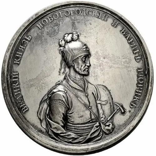 | Obverse description | Helmeted bust Grand Duke Rurik (862-879) wearing cuirass and mantle and holding shield and hammer. |