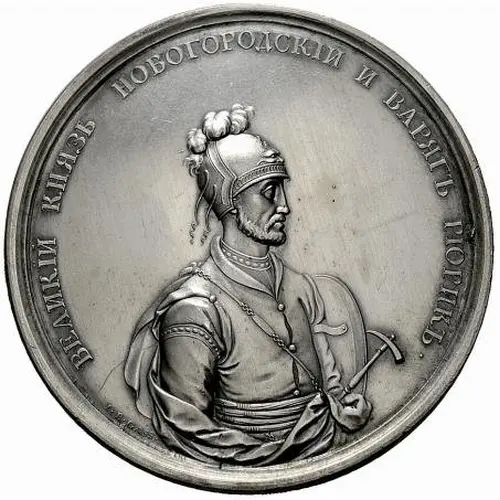 | Obverse description | Helmeted bust Grand Duke Rurik (862-879) wearing cuirass and mantle and holding shield and hammer. |