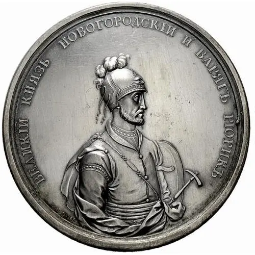 | Opis awersu | Helmeted bust Grand Duke Rurik (862-879) wearing cuirass and mantle and holding shield and hammer. |