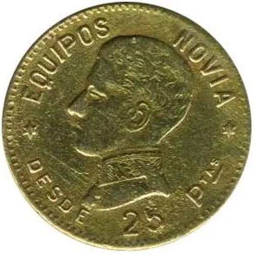 | Obverse lettering | EQUIPOS NOVIA DESDE 25 PTAS (Translation: Bridal outfits from 25 pesetas) |