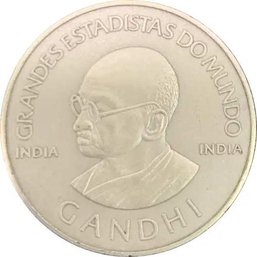 | 表面の銘文 | GRANDES ESTADISTAS DO MUNDO INDIA INDIA GANDHI (Translation: GREAT STATESMAN OF THE WORLD) |