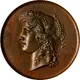 | Reverse description | Woman sitting, facing left, wearing diadem, holding trident in right hand and laurel wreath in left hand. To the left, woman kneeling, facing right, holding cornucopia decorated with domestic animals. Ship to the left. Building of the 1862 International Exhibition in South Kensington in the background. |