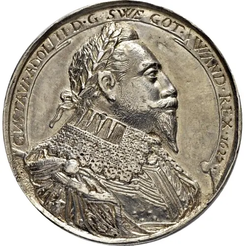 | Ön yüz açıklaması | Laureate bust of King Gustav II Adolf with decorated clothes facing left. King clothes have a large collar and a folded band over shoulders. Legend with date at end engraved in a band over King, around rim. |