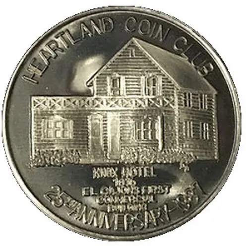 | Obverse lettering | HEARTLAND COIN CLUB KNOX HOTEL 1876 EL CAJONS FIRST COMMERCIAL BUILDING 25TH ANNIVERSARY - 1987 |