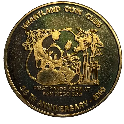 | Obverse lettering | HEARTLAND COIN CLUB FIRST PANDA BORN AT SAN DIEGO ZOO 38TH ANNIVERSARY - 2000 |