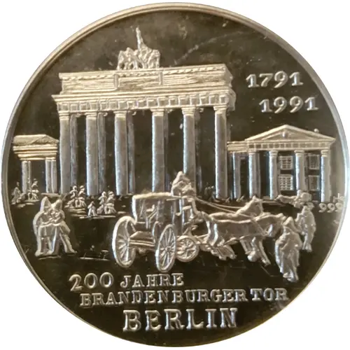 | Obverse description | Silver medal 1991 on the 200th anniversary of the Brandenburg Gate in Berlin. |