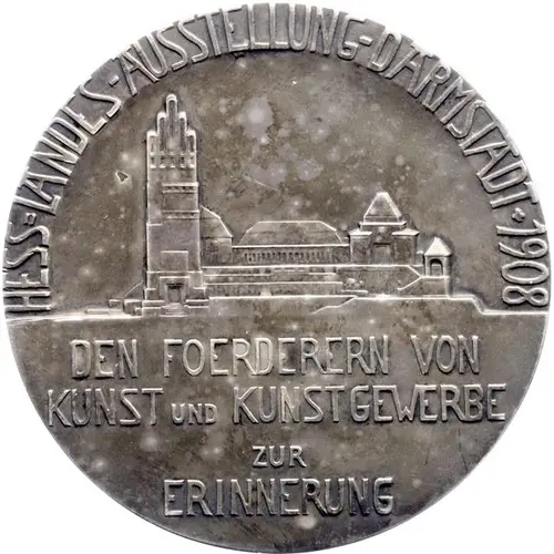 | Obverse lettering | HESS=LANDES-AUSSTELLUNG-DARMSTADT+1908 DEN FOERDERERN VON KUNST UND KUNSTGEWERBE ZUR ERINNERUNG |