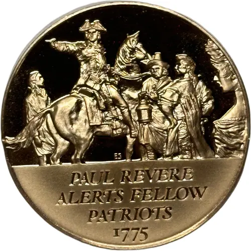 | Opis líce | ES PAUL REVERE ALERTS FELLOW PATRIOTS 1775 |