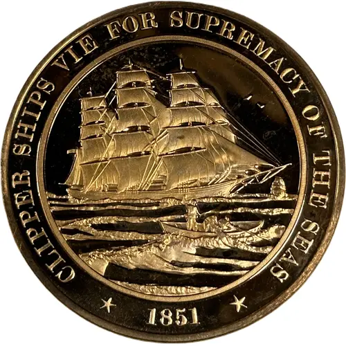 | Obverse lettering | CLIPPER SHIPS VIE FOR SUPREMACY OF THE SEAS AJ 1851 |