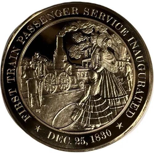 | Obverse lettering | FIRST TRAIN PASSENGER SERVICE INAUGURATED DEC. 25, 1830 RB |