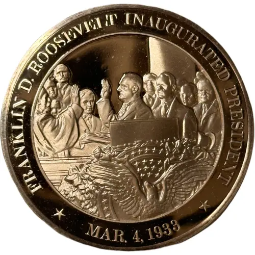 | Obverse lettering | FRANKLINE D. ROOSEVELT INAUGURATED PRESIDENT EL MAR. 4, 1933 |