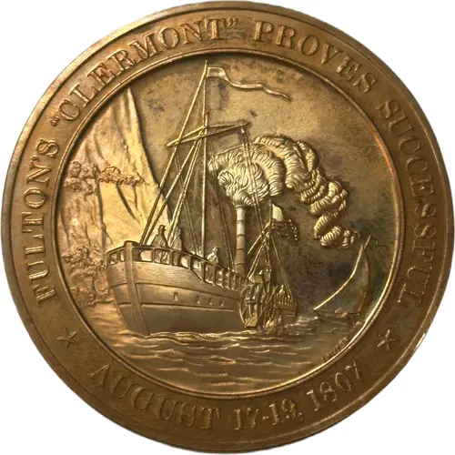 | Obverse lettering | FULTON`S `CLERMONT` PROVES SUCCESSFUL LAUSER AUGUST 17-19, 1807 |