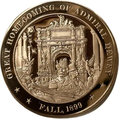 | Obverse lettering | GREAT HOMECOMING OF ADMIRAL DEWEY ES FALL, 1899 |