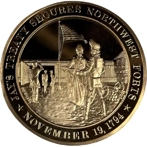 | Obverse lettering | JAY`S TREATY SECURES NORTHWEST FORTS CORNELL NOVEMBER 19, 1794 |