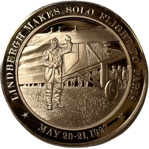 | Obverse lettering | LINDBERGH MAKES SOLO FLIGHT TO PARIS JL MAY 20-21, 1927 |