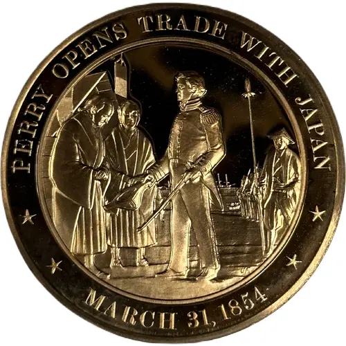 | Obverse lettering | PERRY OPENS TRADE WITH JAPAN JF MARCH 31, 1854 |