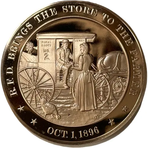 | Obverse lettering | R.F.D. BRINNGS THE STORE TO THE FARMER WS OCT. 1, 1896 |
