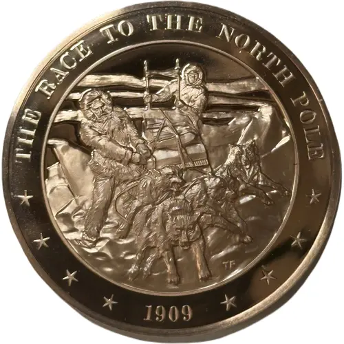 | Obverse lettering | THE RACE TO THE NORTH POLE TP 1909 |