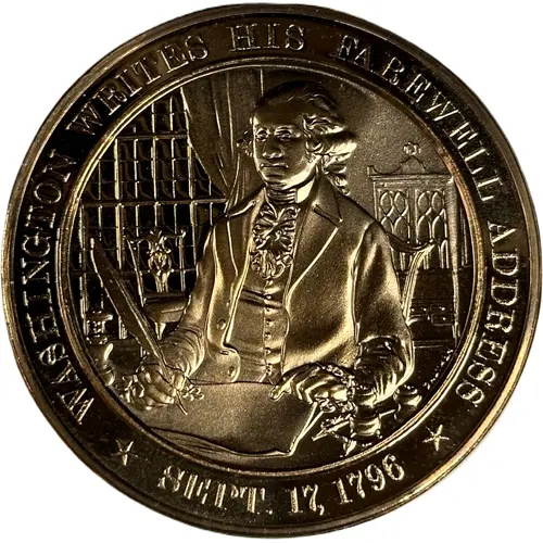 | Obverse lettering | WASHINGTON WRITES HIS FAREWELL ADDRESS P.NATHAN SEPT. 17, 1796 |