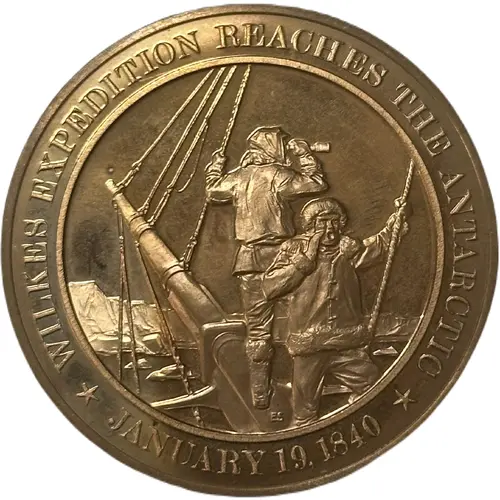 | Obverse lettering | WILKES EXPEDITION REACHES THE ANTARCTIC ES JANUARY 19.1840 |