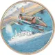 | Reverse description | Jet aircraft above, warship below. |
