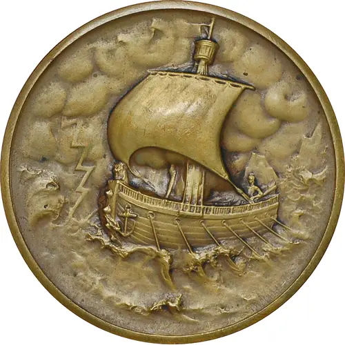 | Reverse description | Crowned Dutch arms on top with inscription below within oak wreath. |