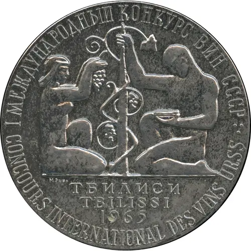 | Obverse lettering | I МЕЖДУНАРОДНЫЙ КОНКУРС ВИН СССР CONCOURS INTERNATONAL DES VINS URSS М. Эшба ТБИЛИСИ TBILISI 1965 (Translation: I International Wins Contest USSR M. Eshba Tbilisi 1965) |